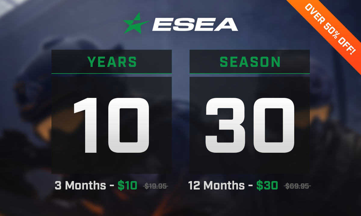 To celebrate all this great history, we are going to be having a massive holiday sale on ESEA Premium and ESEA Insider, running through January 17th, 2019. To celebrate 10 years and 30 seasons of ESEA League, we will be selling multi-month subscriptions at the following prices when checking out using Xsolla: